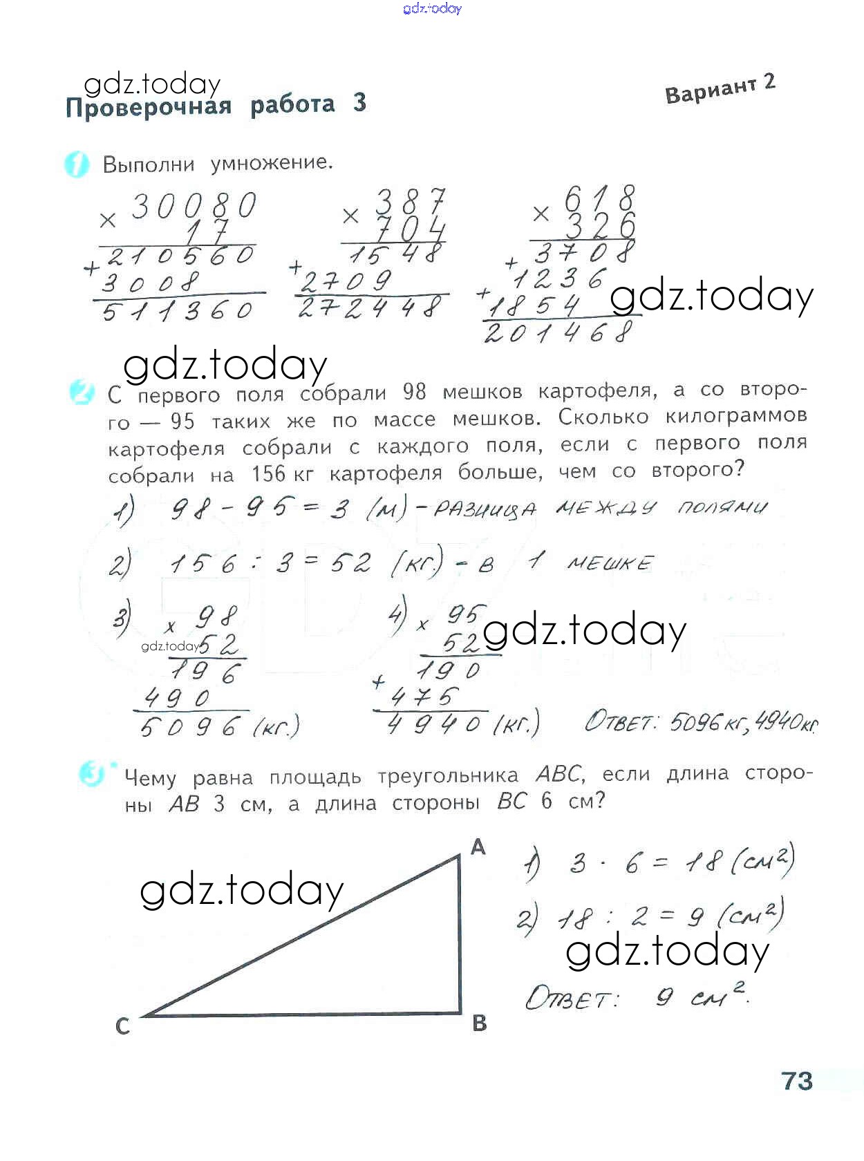 Ответы к Страницы (решение) 73 Проверочным работам по Математике для 4 класса Волкова Просвещение Школа России 2014