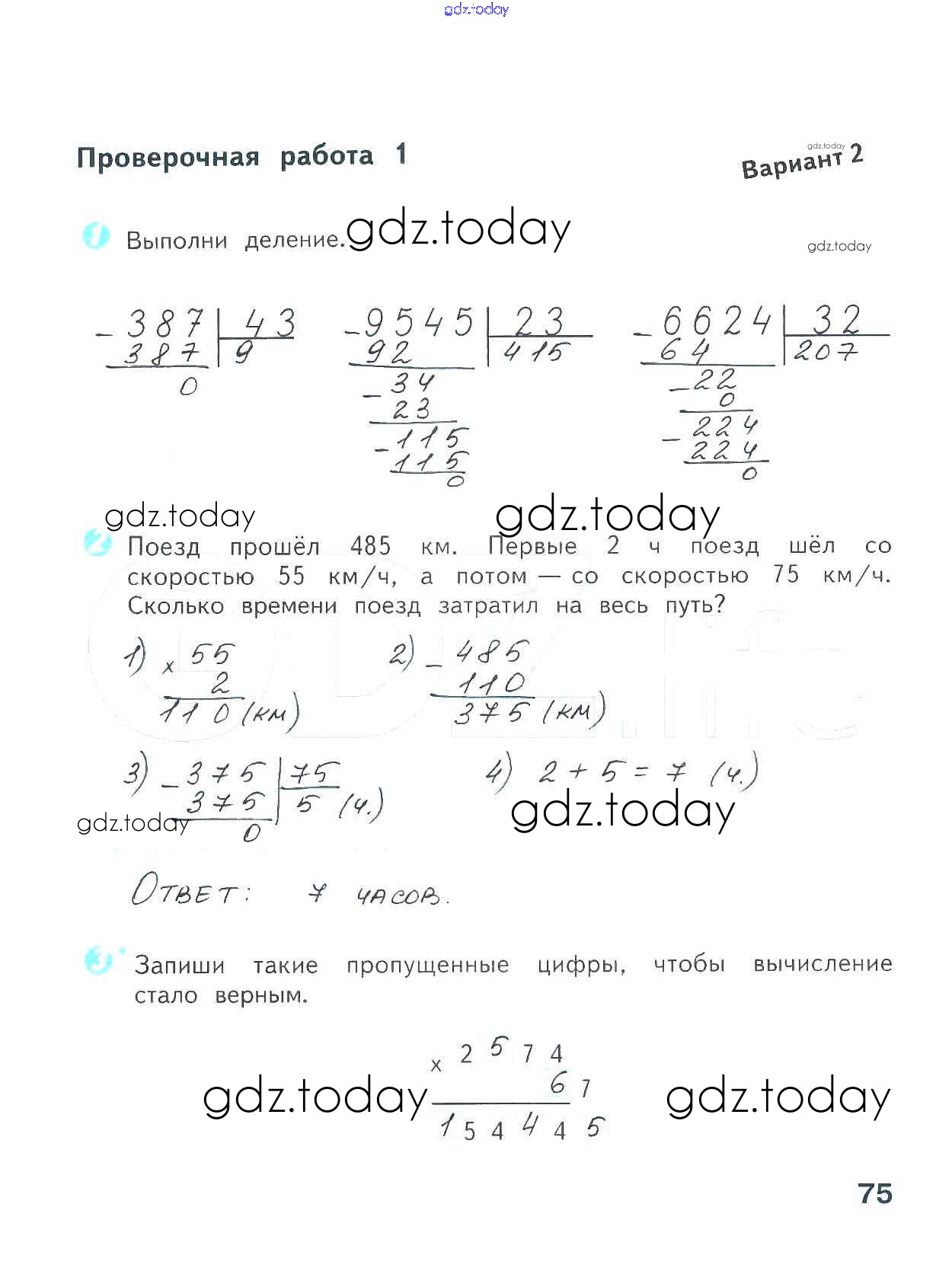 На страницах сайта gdz.today вы найдете учебный и вспомогательный материал, направленный на улучшения знаний школьной программы. ГДЗ - онлайн мир знаний Страницы (решение) 75 Проверочным работам по Математике для 4 класса Волкова Просвещение Школа России 2014