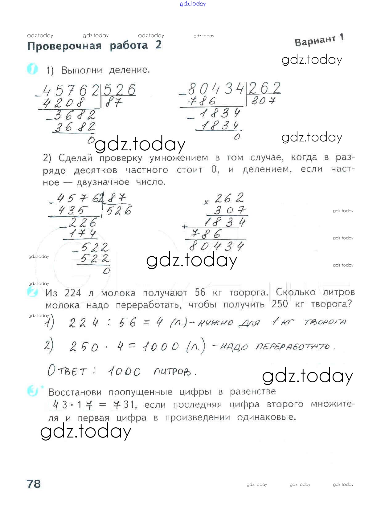 На страницах сайта gdz.today вы найдете учебный и вспомогательный материал, направленный на улучшения знаний школьной программы. ГДЗ - онлайн мир знаний Страницы (решение) 78 Проверочным работам по Математике для 4 класса Волкова Просвещение Школа России 2014