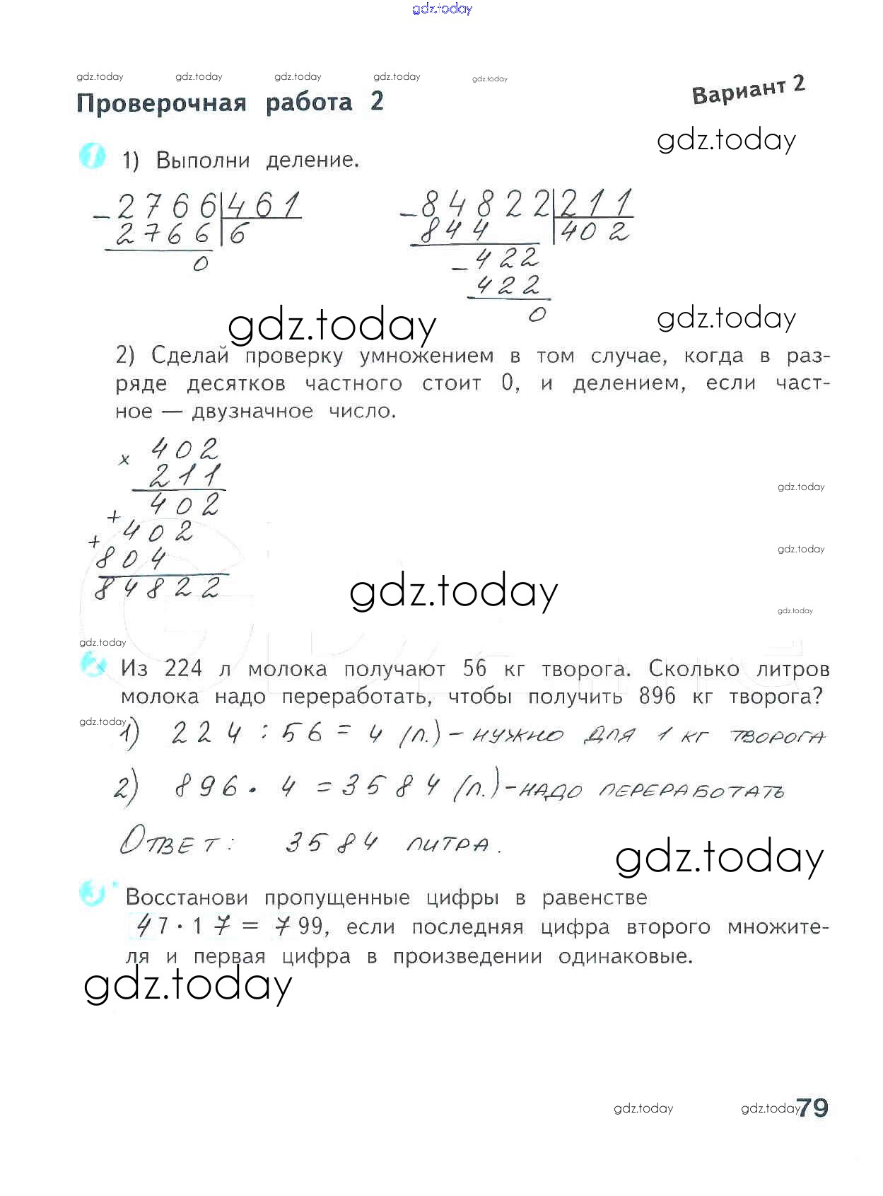 На страницах сайта gdz.today вы найдете учебный и вспомогательный материал, направленный на улучшения знаний школьной программы. ГДЗ - онлайн мир знаний Страницы (решение) 79 Проверочным работам по Математике для 4 класса Волкова Просвещение Школа России 2014