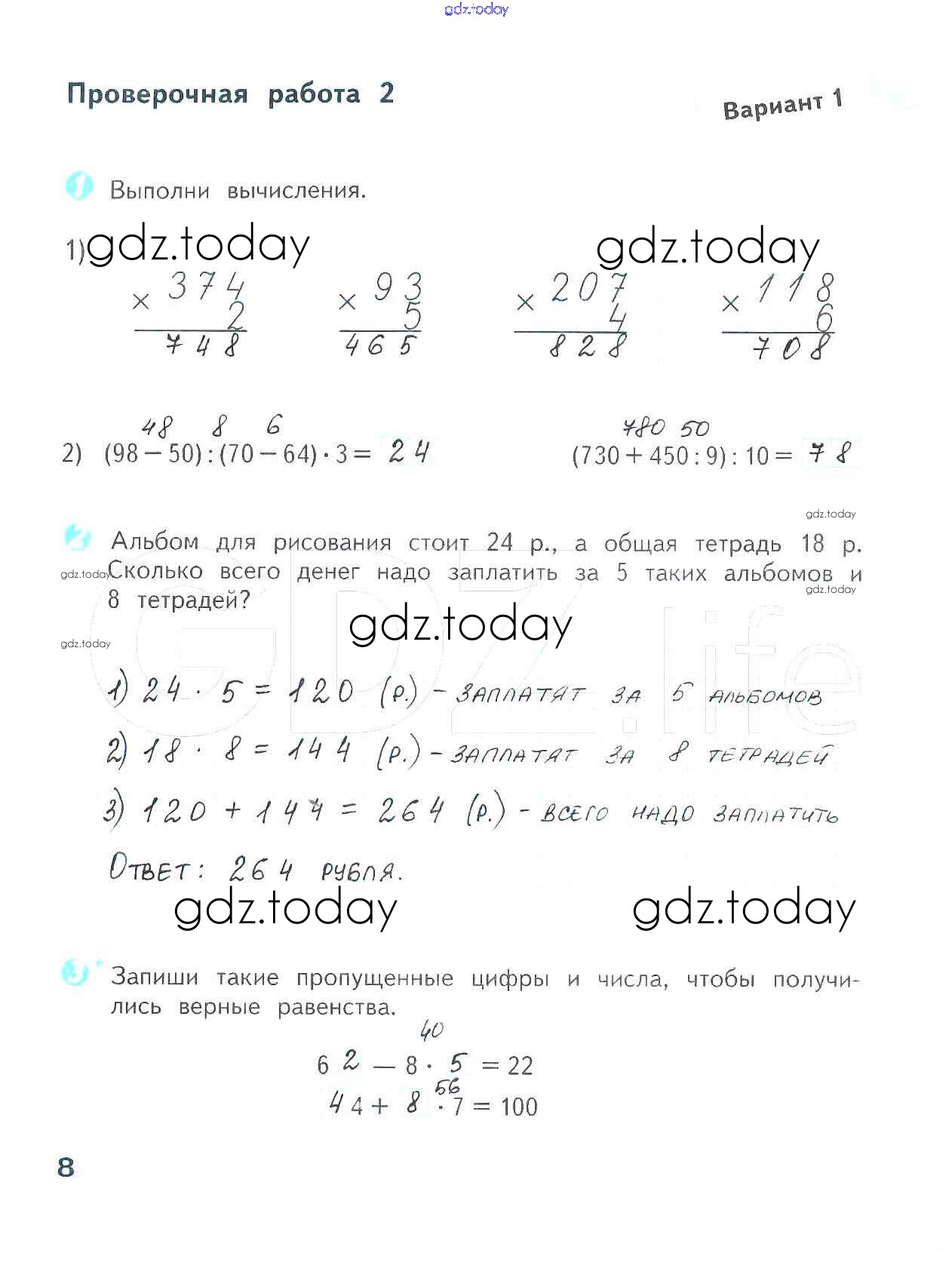 На страницах сайта gdz.today вы найдете учебный и вспомогательный материал, направленный на улучшения знаний школьной программы. ГДЗ - онлайн мир знаний Страницы (решение) 8 Проверочным работам по Математике для 4 класса Волкова Просвещение Школа России 2014