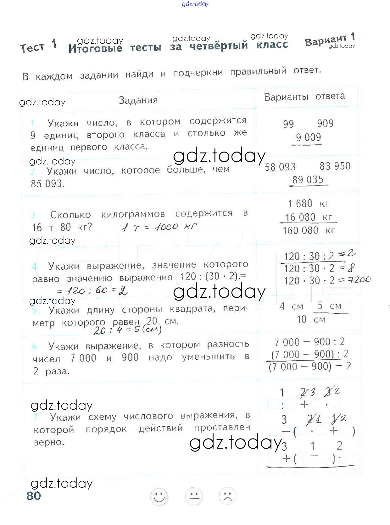 На страницах сайта gdz.today вы найдете учебный и вспомогательный материал, направленный на улучшения знаний школьной программы. ГДЗ - онлайн мир знаний Страницы (решение) 80 Проверочным работам по Математике для 4 класса Волкова Просвещение Школа России 2014