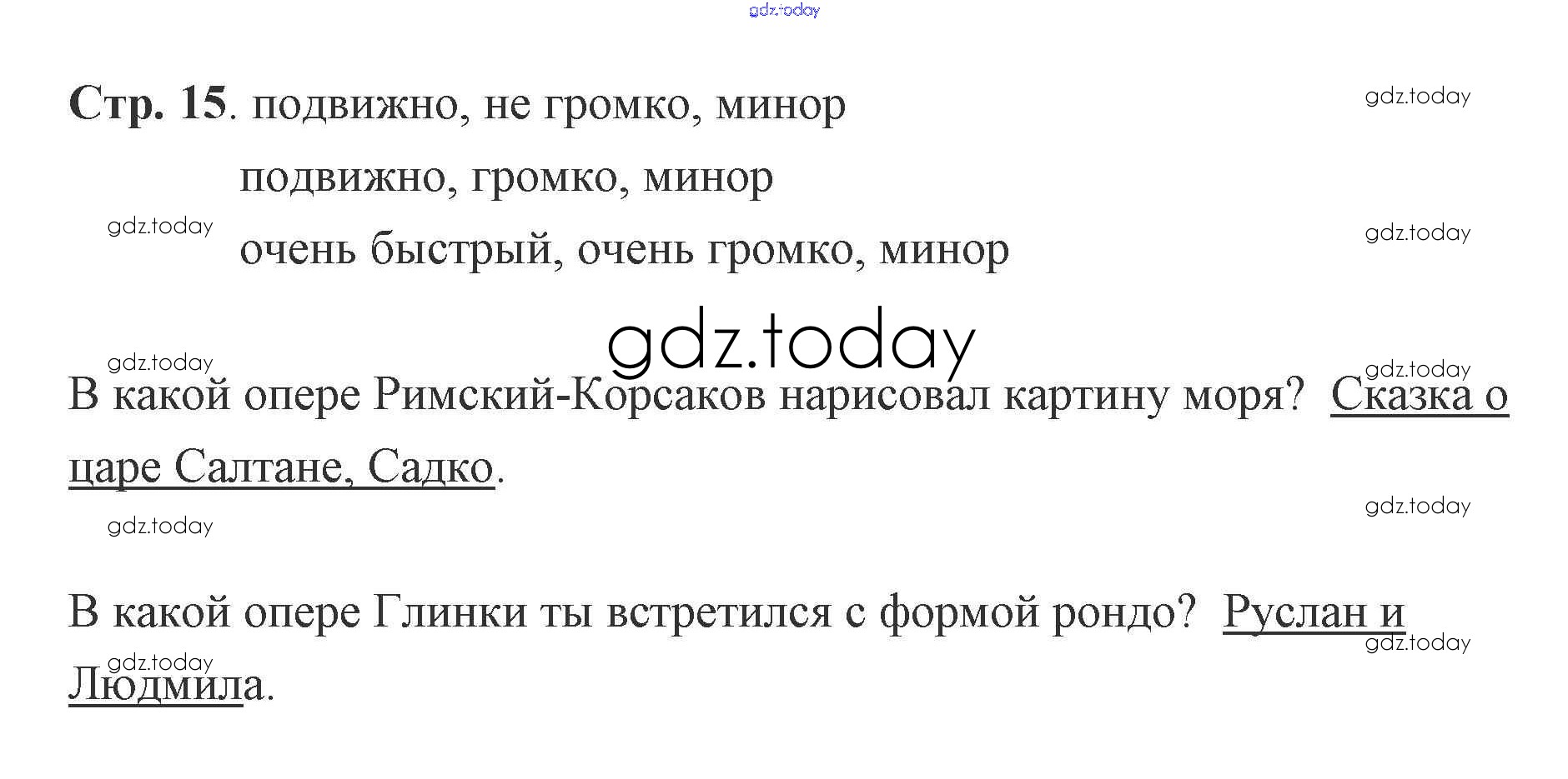 На страницах сайта gdz.today вы найдете учебный и вспомогательный материал, направленный на улучшения знаний школьной программы. ГДЗ - онлайн мир знаний Страницы (решение) 15 Рабочей тетради по Музыке для 4 класса Критская, Сергеева Просвещение Перспектива 2018