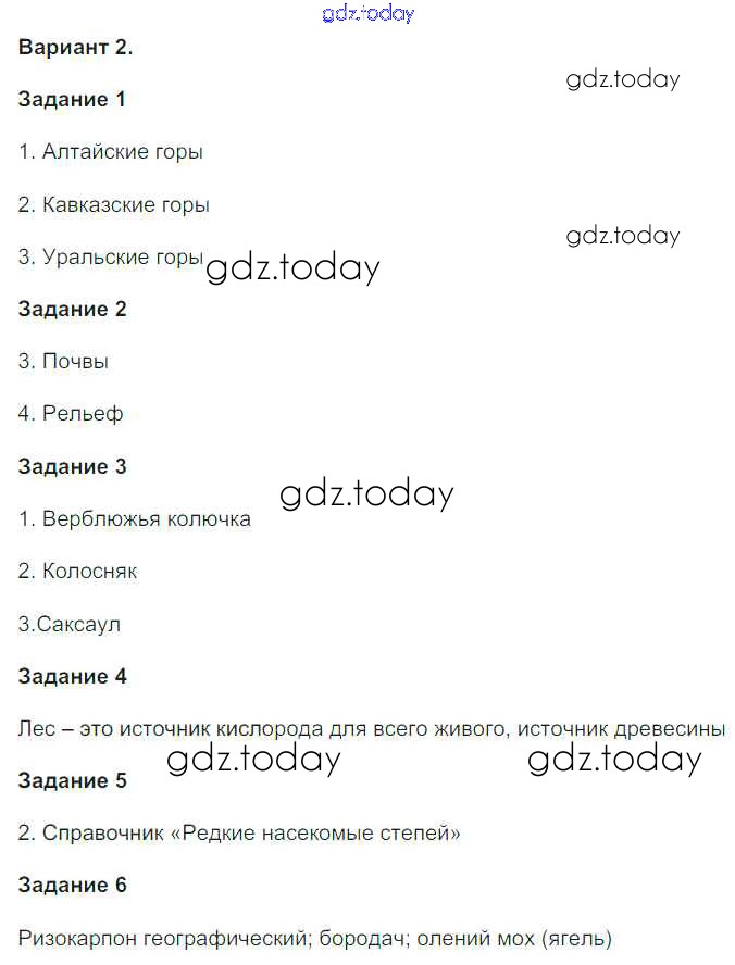 На страницах сайта gdz.today вы найдете учебный и вспомогательный материал, направленный на улучшения знаний школьной программы. ГДЗ - онлайн мир знаний Решение к проверочной работе №2. Варианты 2 Проверочным работам по Окружающему миру для 4 класса Плешаков, Крючкова Просвещение Школа России 2018