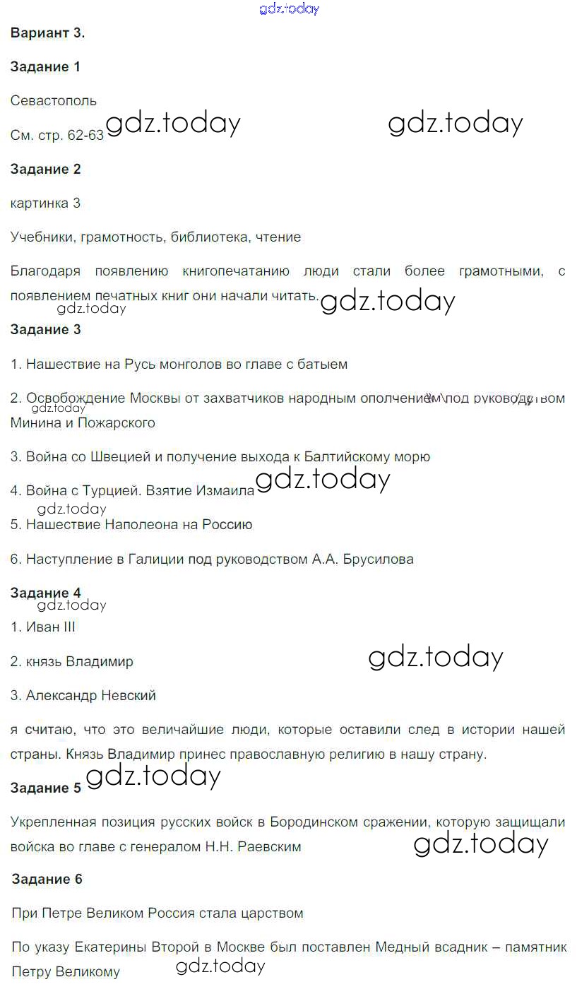 На страницах сайта gdz.today вы найдете учебный и вспомогательный материал, направленный на улучшения знаний школьной программы. ГДЗ - онлайн мир знаний Решение к проверочной работе №5. Варианты 3 Проверочным работам по Окружающему миру для 4 класса Плешаков, Крючкова Просвещение Школа России 2018