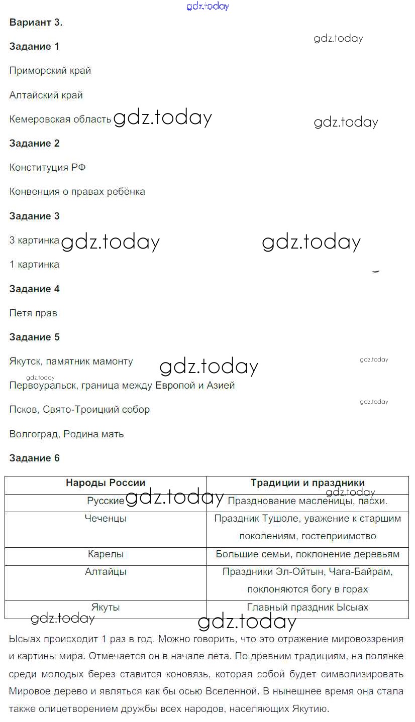 На страницах сайта gdz.today вы найдете учебный и вспомогательный материал, направленный на улучшения знаний школьной программы. ГДЗ - онлайн мир знаний Решение к проверочной работе №-6. Варианты 3 Проверочным работам по Окружающему миру для 4 класса Плешаков, Крючкова Просвещение Школа России 2018