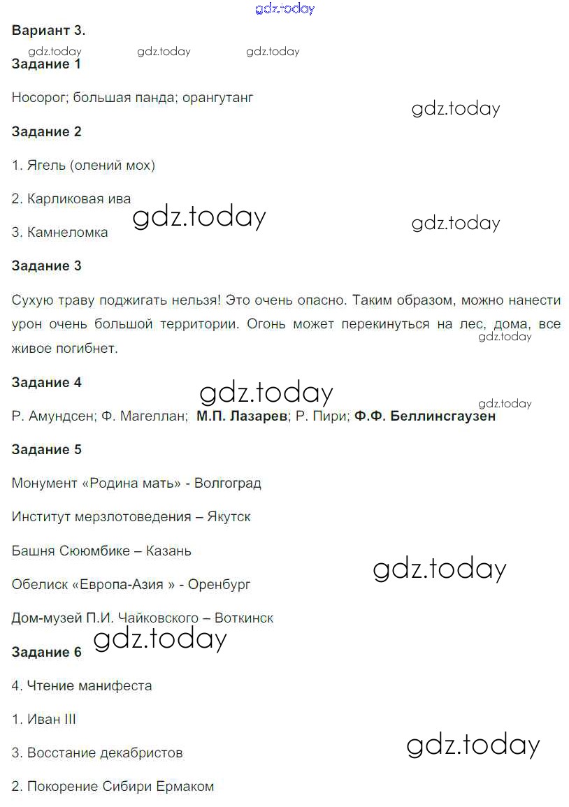На страницах сайта gdz.today вы найдете учебный и вспомогательный материал, направленный на улучшения знаний школьной программы. ГДЗ - онлайн мир знаний Решение к итоговым проверочным работам 4 класс. Варианты 3 Проверочным работам по Окружающему миру для 4 класса Плешаков, Крючкова Просвещение Школа России 2018