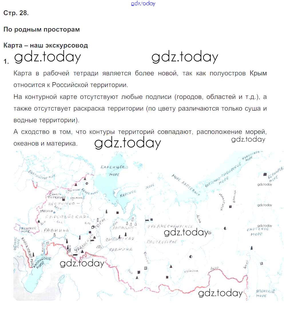 На страницах сайта gdz.today вы найдете учебный и вспомогательный материал, направленный на улучшения знаний школьной программы. ГДЗ - онлайн мир знаний Решение к части 1. Страницы 28 Рабочей тетради по Окружающему миру для 4 класса Плешаков, Новицкая Просвещение Перспектива 2015