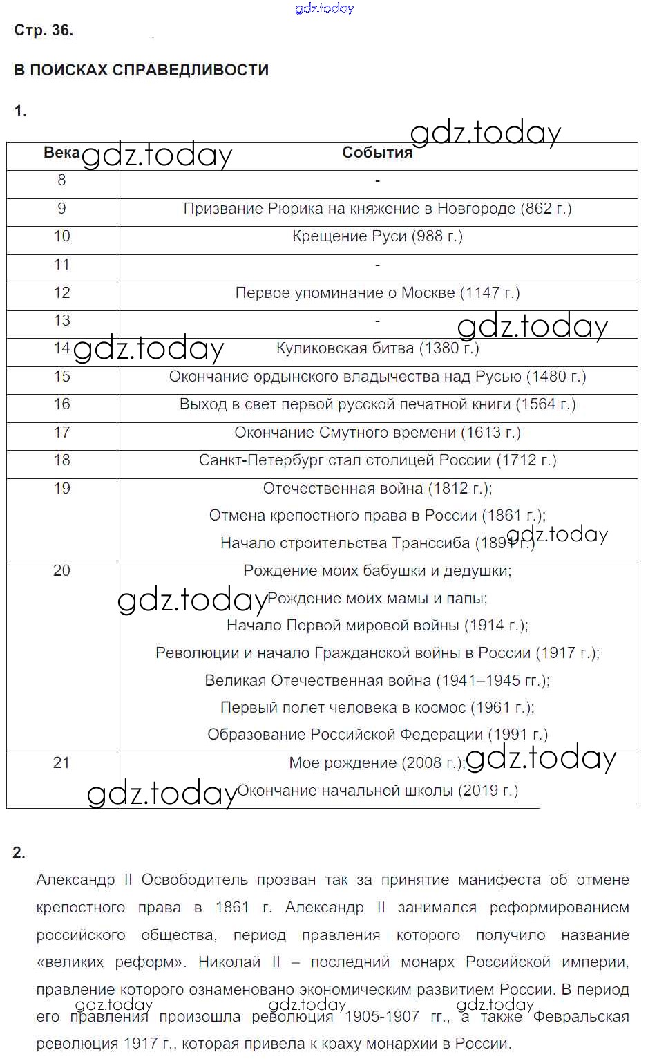 На страницах сайта gdz.today вы найдете учебный и вспомогательный материал, направленный на улучшения знаний школьной программы. ГДЗ - онлайн мир знаний Решение к части 2. Страницы 36 Рабочей тетради по Окружающему миру для 4 класса Плешаков, Новицкая Просвещение Перспектива 2015