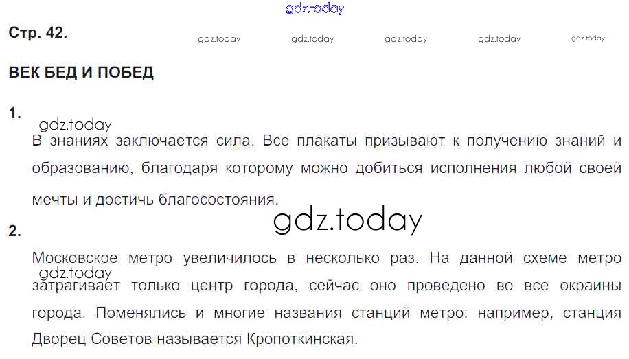 На страницах сайта gdz.today вы найдете учебный и вспомогательный материал, направленный на улучшения знаний школьной программы. ГДЗ - онлайн мир знаний Решение к части 2. Страницы 42 Рабочей тетради по Окружающему миру для 4 класса Плешаков, Новицкая Просвещение Перспектива 2015