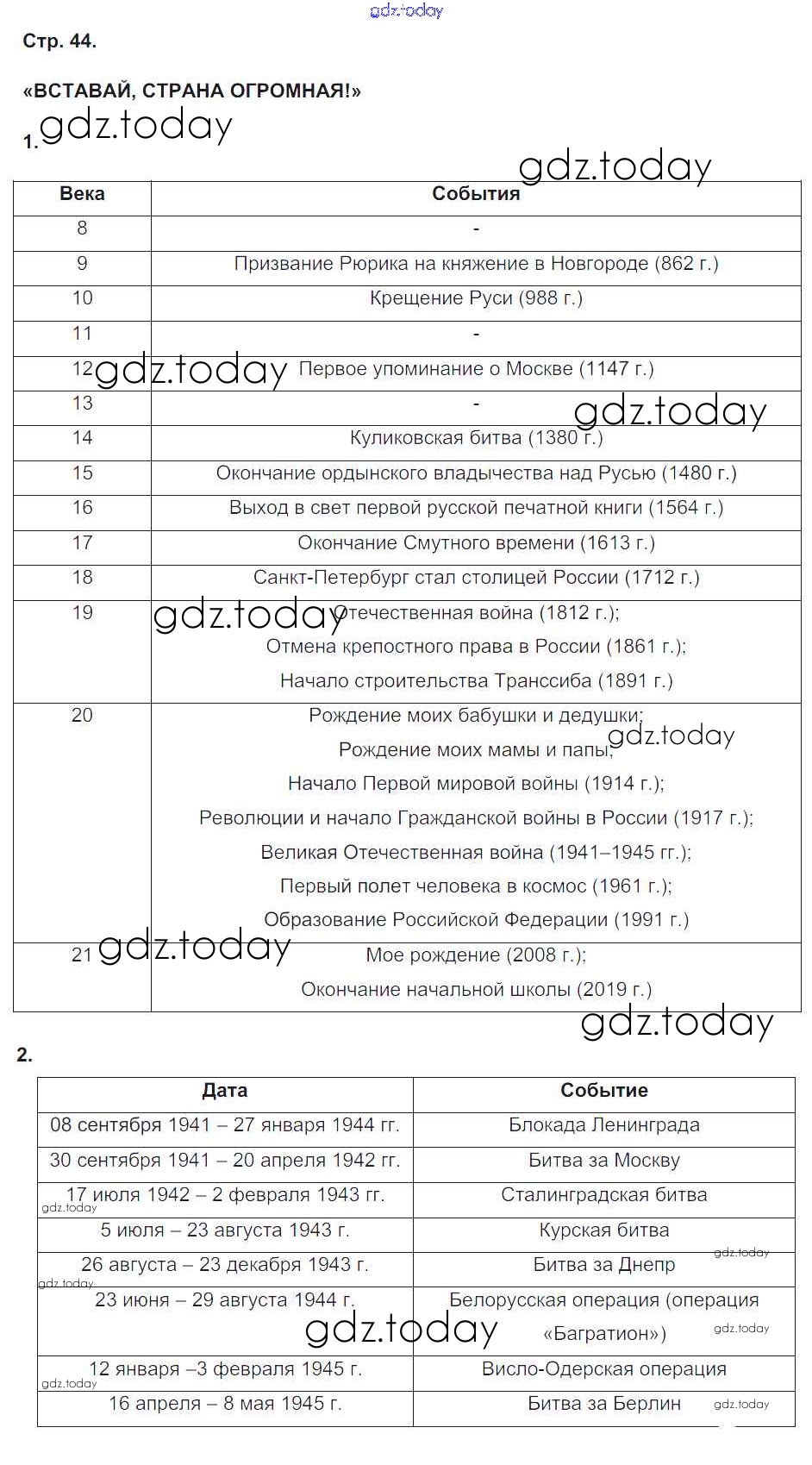 На страницах сайта gdz.today вы найдете учебный и вспомогательный материал, направленный на улучшения знаний школьной программы. ГДЗ - онлайн мир знаний Решение к части 2. Страницы 44 Рабочей тетради по Окружающему миру для 4 класса Плешаков, Новицкая Просвещение Перспектива 2015
