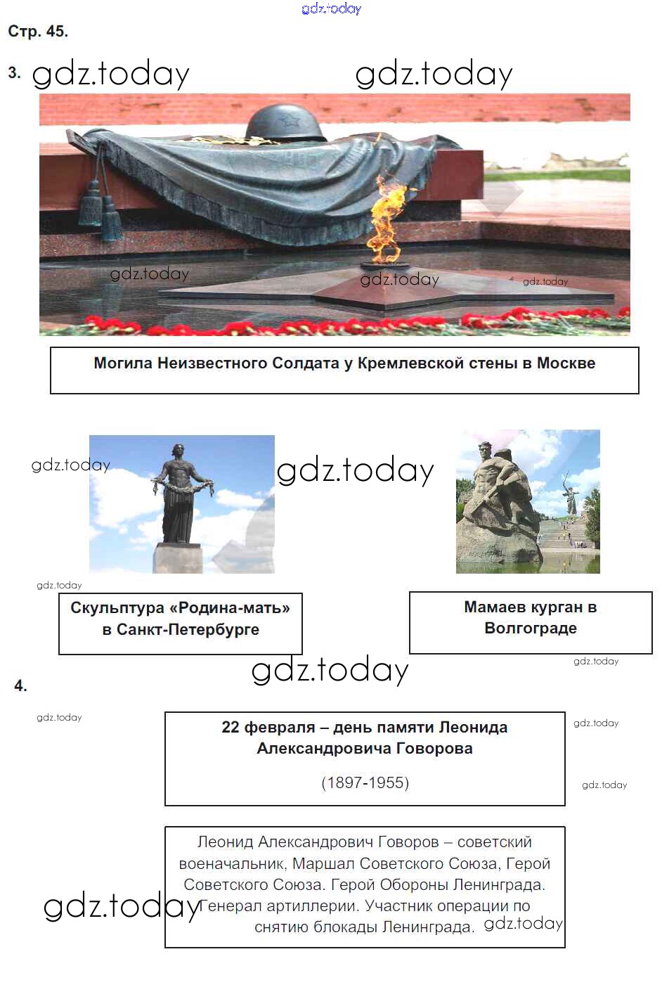 На страницах сайта gdz.today вы найдете учебный и вспомогательный материал, направленный на улучшения знаний школьной программы. ГДЗ - онлайн мир знаний Решение к части 2. Страницы 45 Рабочей тетради по Окружающему миру для 4 класса Плешаков, Новицкая Просвещение Перспектива 2015