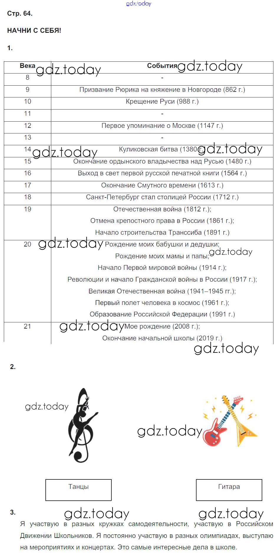 На страницах сайта gdz.today вы найдете учебный и вспомогательный материал, направленный на улучшения знаний школьной программы. ГДЗ - онлайн мир знаний Решение к части 2. Страницы 64 Рабочей тетради по Окружающему миру для 4 класса Плешаков, Новицкая Просвещение Перспектива 2015