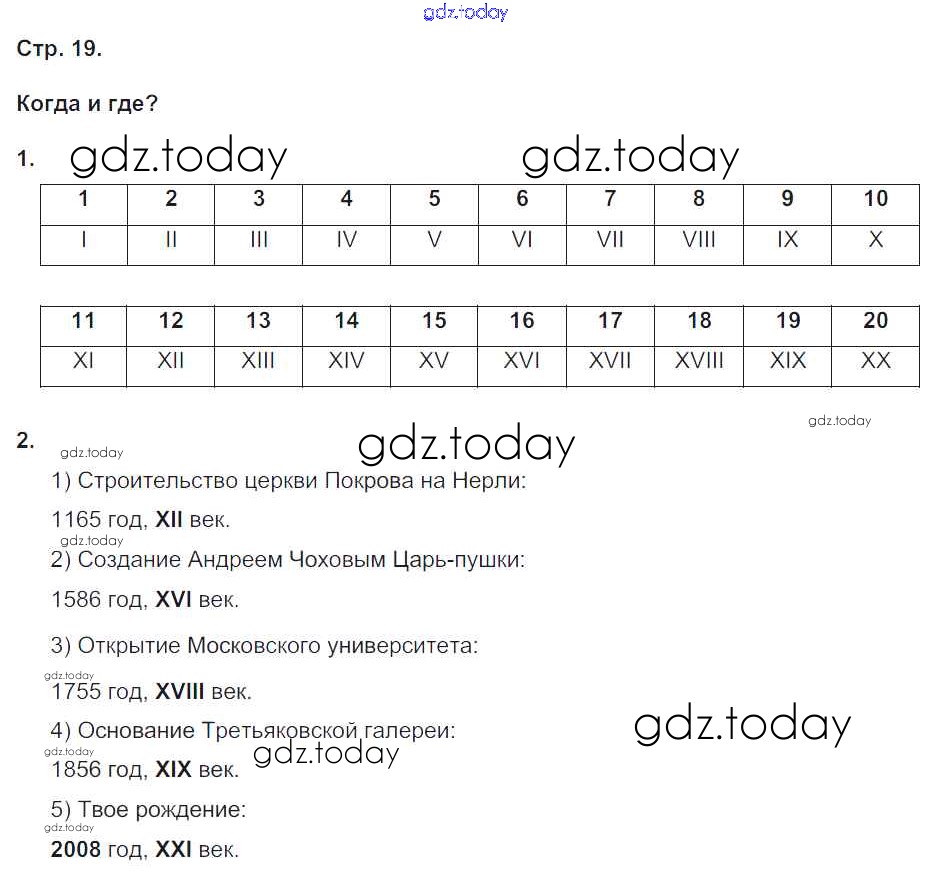 На страницах сайта gdz.today вы найдете учебный и вспомогательный материал, направленный на улучшения знаний школьной программы. ГДЗ - онлайн мир знаний Решение к части 1. Страницы 19 Рабочей тетради по Окружающему миру для 4 класса Плешаков, Крючкова Просвещение Школа России 2014