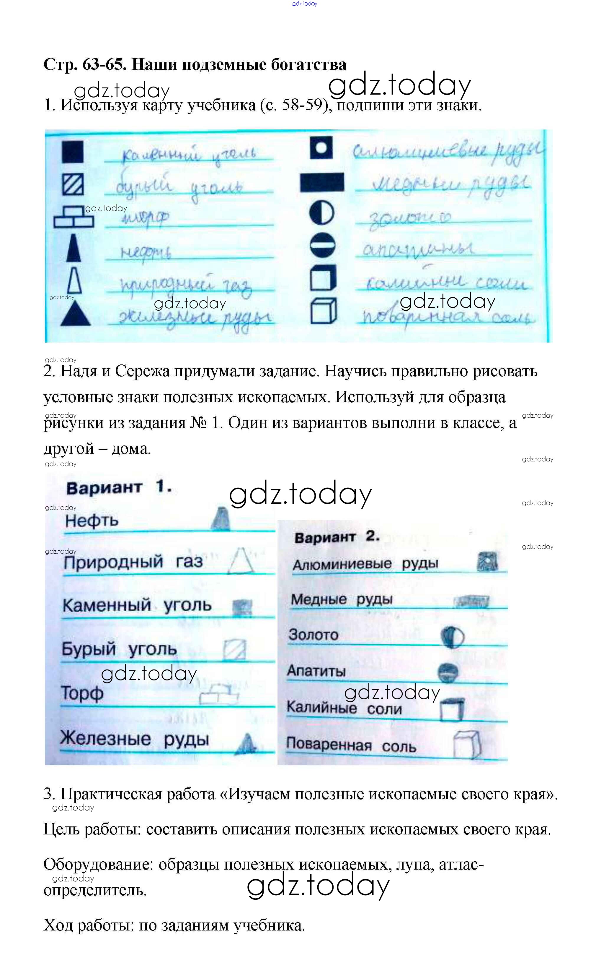 На страницах сайта gdz.today вы найдете учебный и вспомогательный материал, направленный на улучшения знаний школьной программы. ГДЗ - онлайн мир знаний Решение к части 1. Страницы 63 Рабочей тетради по Окружающему миру для 4 класса Плешаков, Крючкова Просвещение Школа России 2014