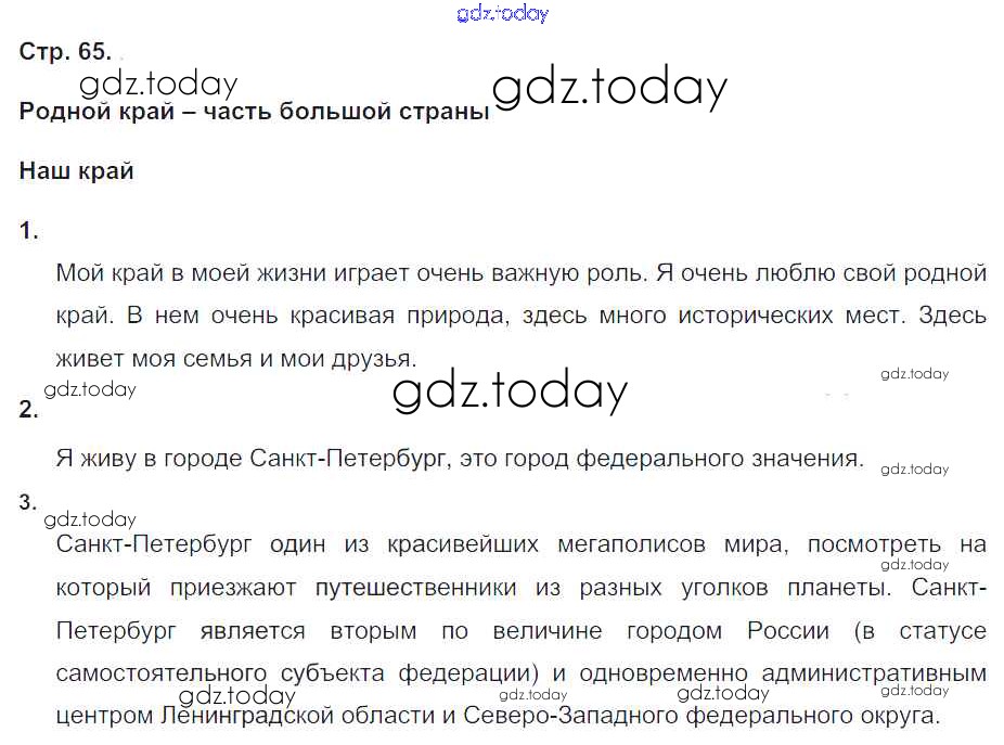 На страницах сайта gdz.today вы найдете учебный и вспомогательный материал, направленный на улучшения знаний школьной программы. ГДЗ - онлайн мир знаний Решение к части 1. Страницы 65 Рабочей тетради по Окружающему миру для 4 класса Плешаков, Крючкова Просвещение Школа России 2014