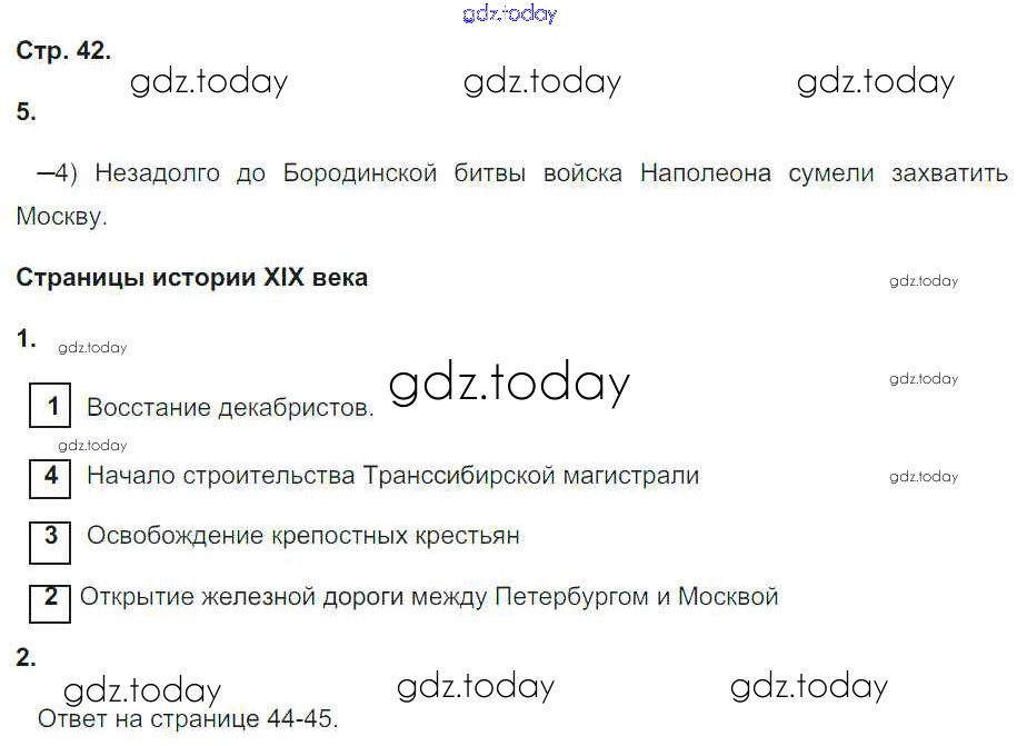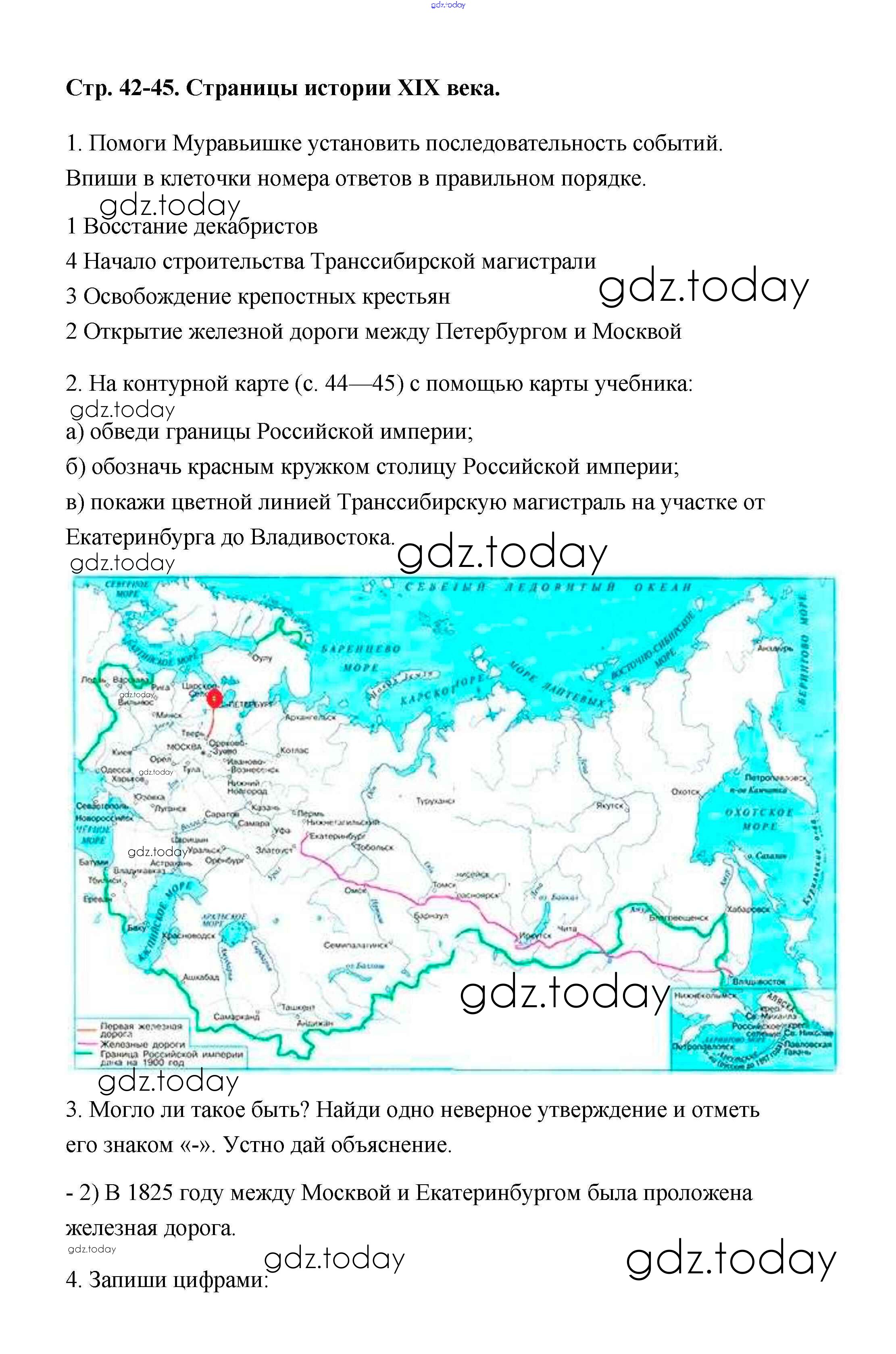 На страницах сайта gdz.today вы найдете учебный и вспомогательный материал, направленный на улучшения знаний школьной программы. ГДЗ - онлайн мир знаний Решение к части 2. Страницы 42 Рабочей тетради по Окружающему миру для 4 класса Плешаков, Крючкова Просвещение Школа России 2014