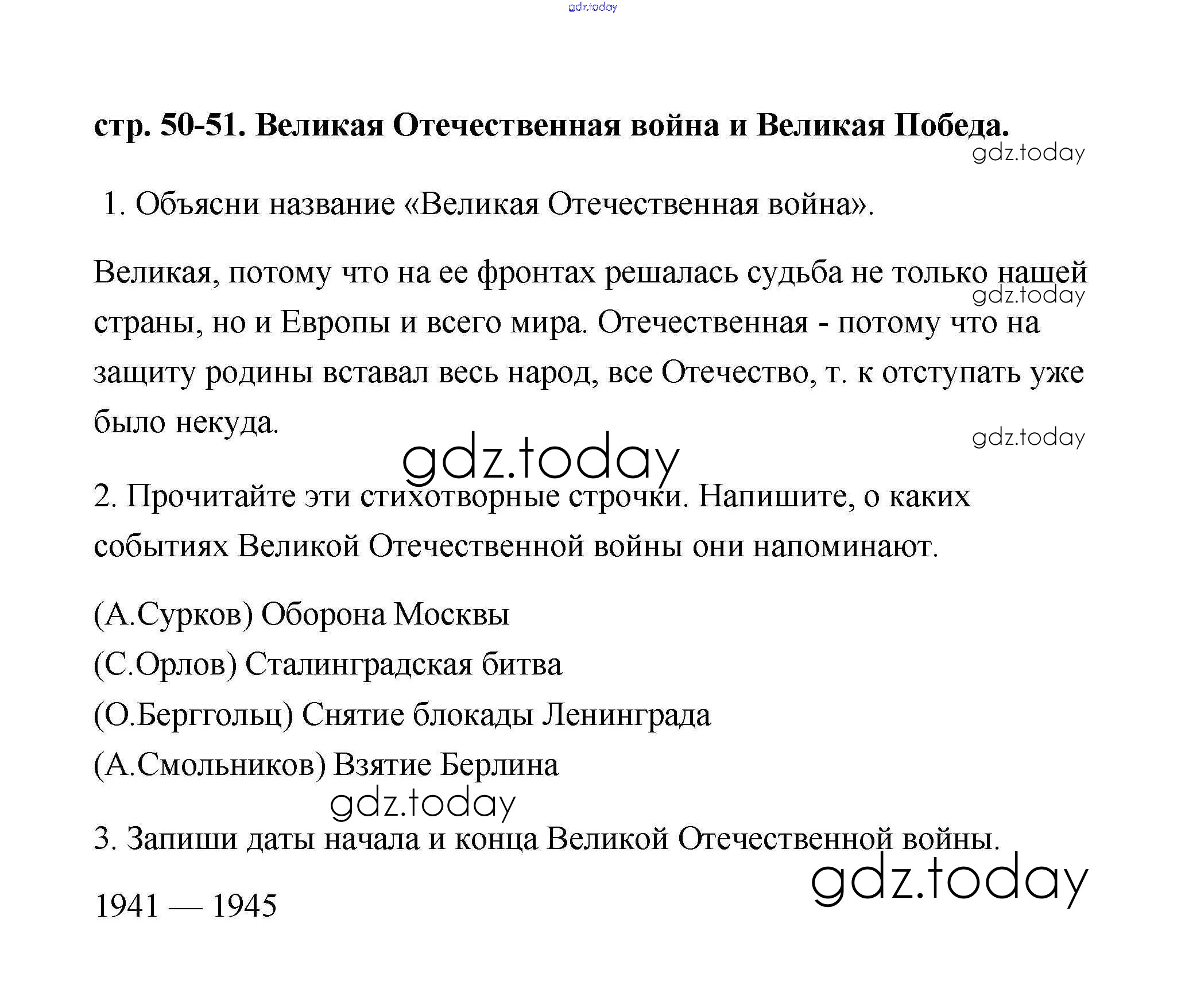 На страницах сайта gdz.today вы найдете учебный и вспомогательный материал, направленный на улучшения знаний школьной программы. ГДЗ - онлайн мир знаний Решение к части 2. Страницы 50 Рабочей тетради по Окружающему миру для 4 класса Плешаков, Крючкова Просвещение Школа России 2014
