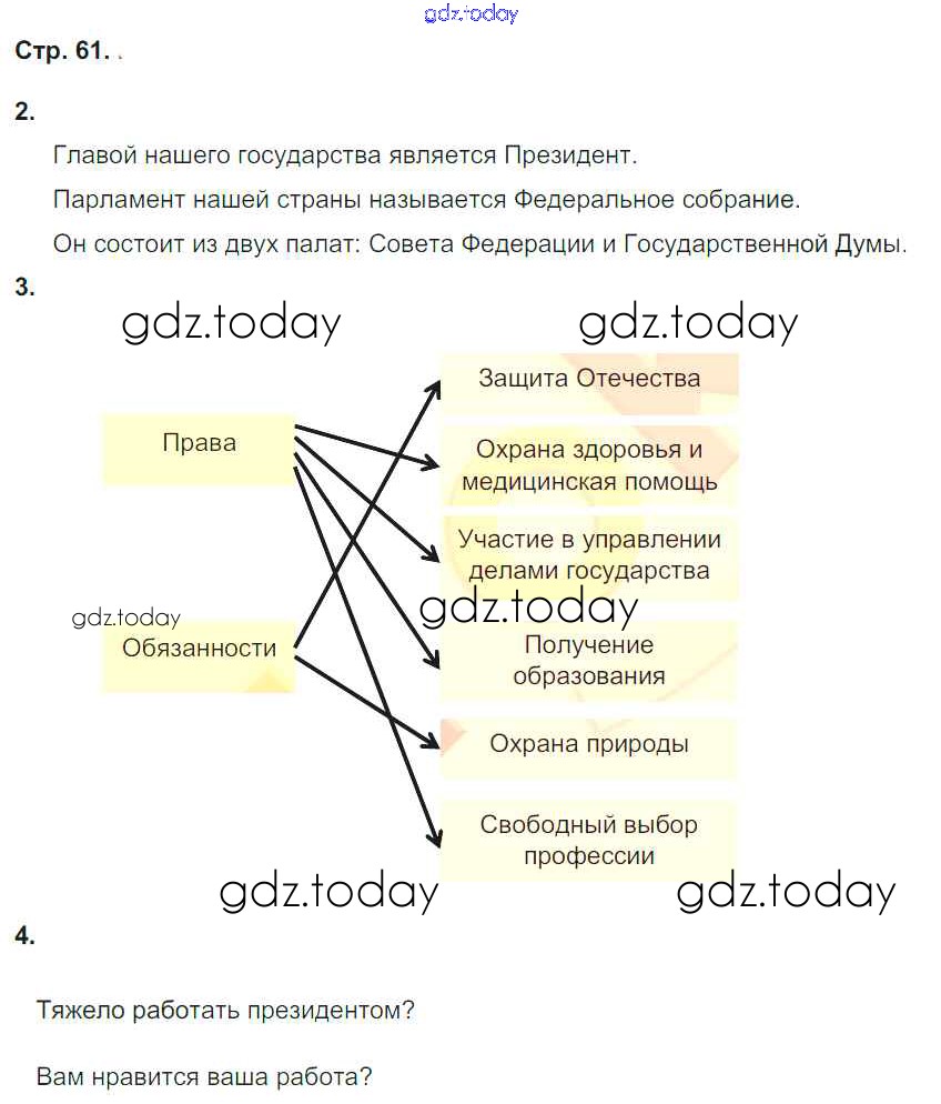 На страницах сайта gdz.today вы найдете учебный и вспомогательный материал, направленный на улучшения знаний школьной программы. ГДЗ - онлайн мир знаний Решение к части 2. Страницы 61 Рабочей тетради по Окружающему миру для 4 класса Плешаков, Крючкова Просвещение Школа России 2014