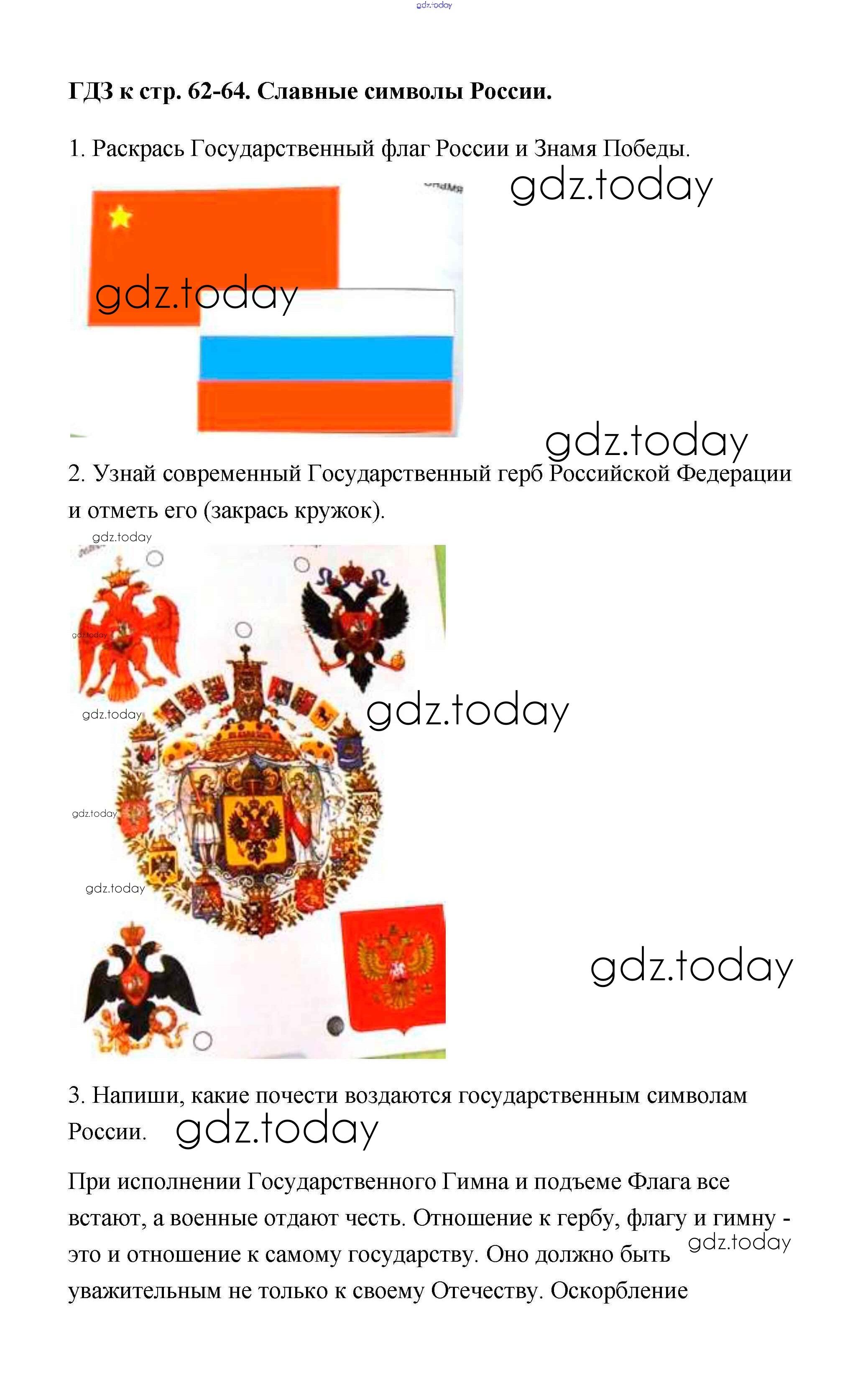 На страницах сайта gdz.today вы найдете учебный и вспомогательный материал, направленный на улучшения знаний школьной программы. ГДЗ - онлайн мир знаний Решение к части 2. Страницы 62 Рабочей тетради по Окружающему миру для 4 класса Плешаков, Крючкова Просвещение Школа России 2014