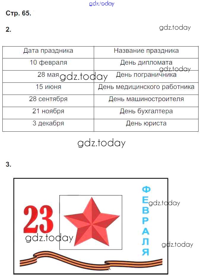 На страницах сайта gdz.today вы найдете учебный и вспомогательный материал, направленный на улучшения знаний школьной программы. ГДЗ - онлайн мир знаний Решение к части 2. Страницы 65 Рабочей тетради по Окружающему миру для 4 класса Плешаков, Крючкова Просвещение Школа России 2014