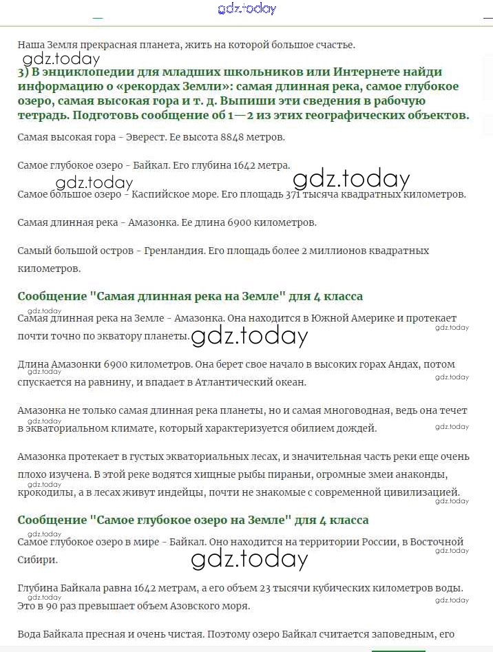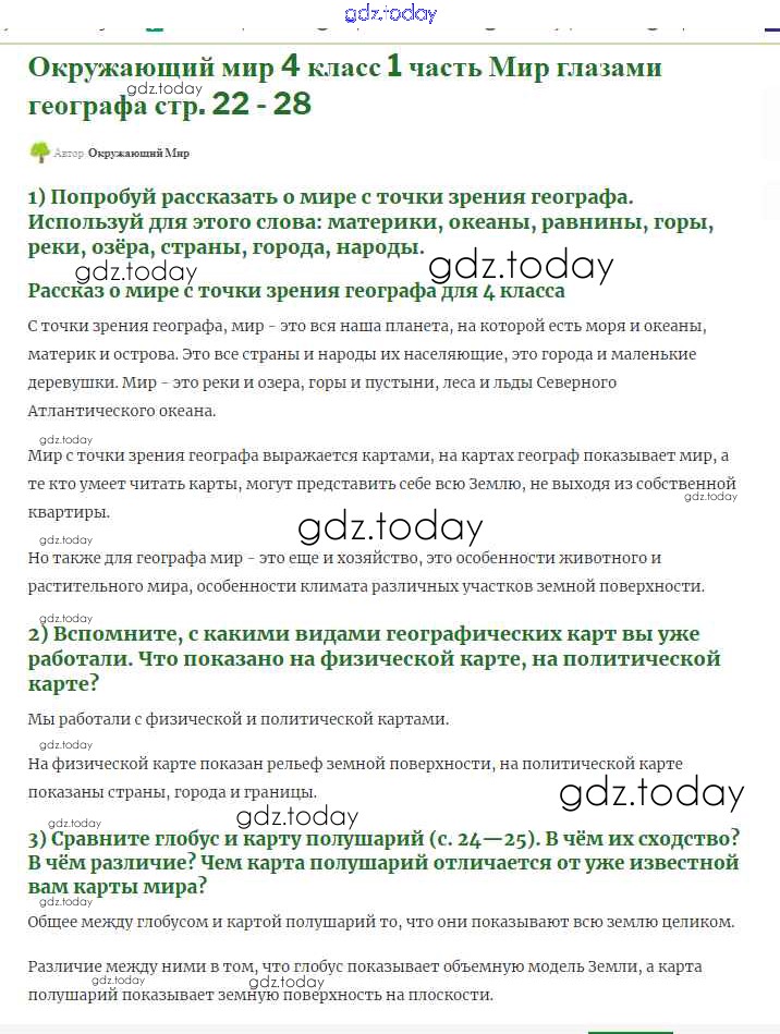 На страницах сайта gdz.today вы найдете учебный и вспомогательный материал, направленный на улучшения знаний школьной программы. ГДЗ - онлайн мир знаний Земля и человечество Решение к части 1 22 Учебнику по Окружающему миру для 4 класса Плешаков, Крючкова Просвещение Школа России 2013