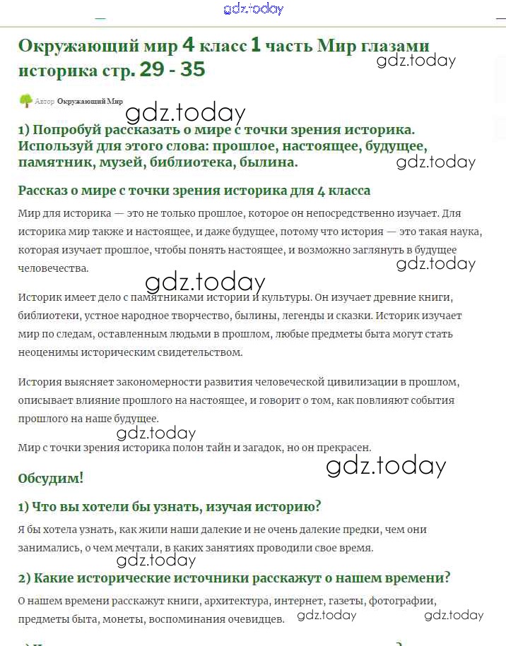 На страницах сайта gdz.today вы найдете учебный и вспомогательный материал, направленный на улучшения знаний школьной программы. ГДЗ - онлайн мир знаний Земля и человечество Решение к части 1 29 Учебнику по Окружающему миру для 4 класса Плешаков, Крючкова Просвещение Школа России 2013