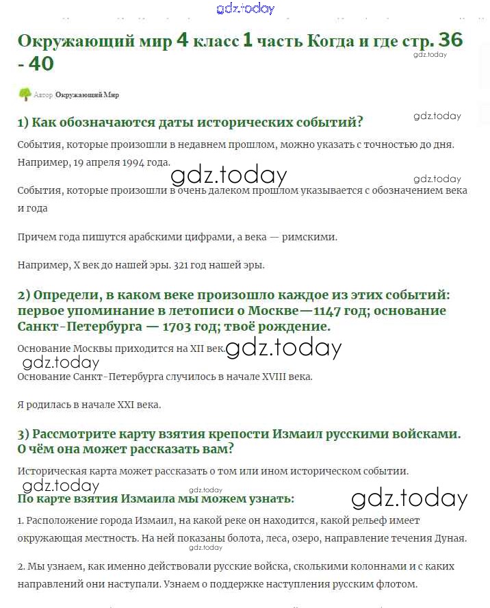 На страницах сайта gdz.today вы найдете учебный и вспомогательный материал, направленный на улучшения знаний школьной программы. ГДЗ - онлайн мир знаний Земля и человечество Решение к части 1 36 Учебнику по Окружающему миру для 4 класса Плешаков, Крючкова Просвещение Школа России 2013