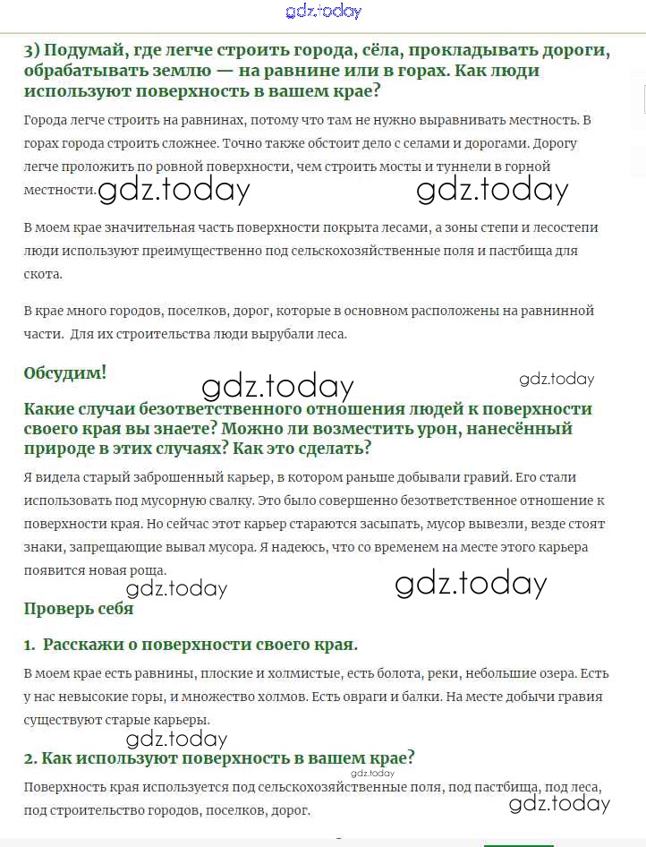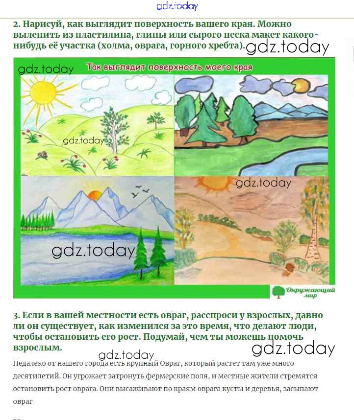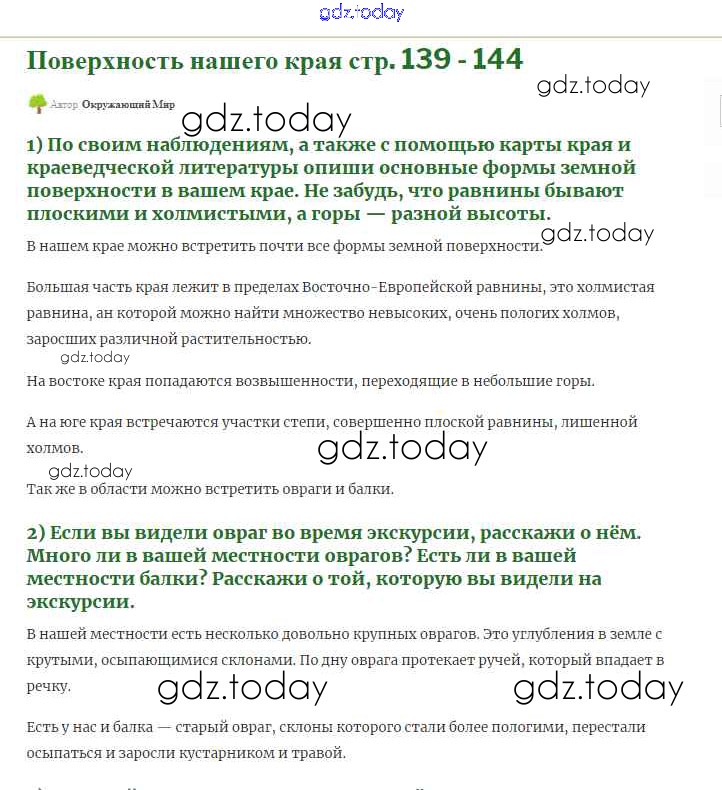 На страницах сайта gdz.today вы найдете учебный и вспомогательный материал, направленный на улучшения знаний школьной программы. ГДЗ - онлайн мир знаний Родной край - часть большой страны Решение к части 1 139 Учебнику по Окружающему миру для 4 класса Плешаков, Крючкова Просвещение Школа России 2013