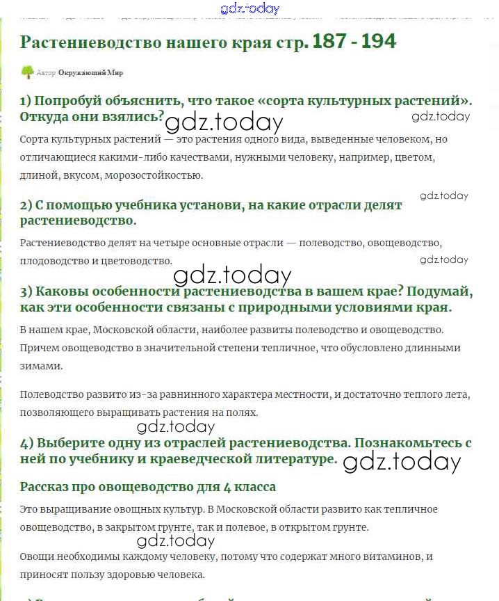 На страницах сайта gdz.today вы найдете учебный и вспомогательный материал, направленный на улучшения знаний школьной программы. ГДЗ - онлайн мир знаний Родной край - часть большой страны Решение к части 1 187 Учебнику по Окружающему миру для 4 класса Плешаков, Крючкова Просвещение Школа России 2013