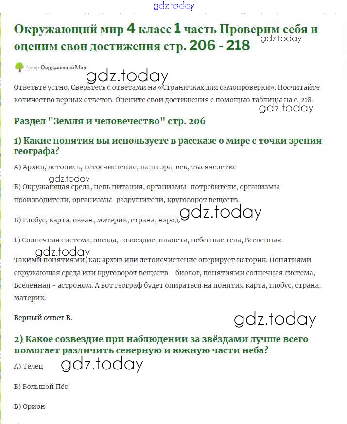 На страницах сайта gdz.today вы найдете учебный и вспомогательный материал, направленный на улучшения знаний школьной программы. ГДЗ - онлайн мир знаний Наши проекты Решение к части 1 206 Учебнику по Окружающему миру для 4 класса Плешаков, Крючкова Просвещение Школа России 2013