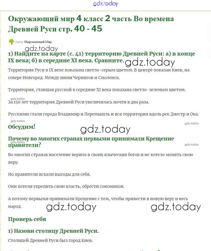На страницах сайта gdz.today вы найдете учебный и вспомогательный материал, направленный на улучшения знаний школьной программы. ГДЗ - онлайн мир знаний Страницы истории России Решение к части 2 40 Учебнику по Окружающему миру для 4 класса Плешаков, Крючкова Просвещение Школа России 2013