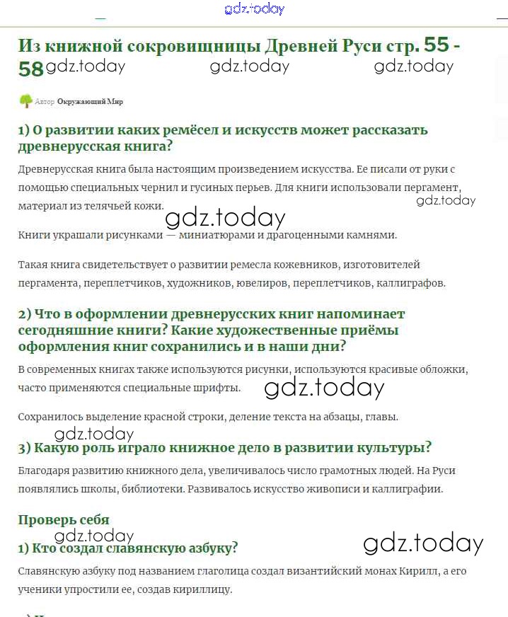 На страницах сайта gdz.today вы найдете учебный и вспомогательный материал, направленный на улучшения знаний школьной программы. ГДЗ - онлайн мир знаний Страницы истории России Решение к части 2 55 Учебнику по Окружающему миру для 4 класса Плешаков, Крючкова Просвещение Школа России 2013