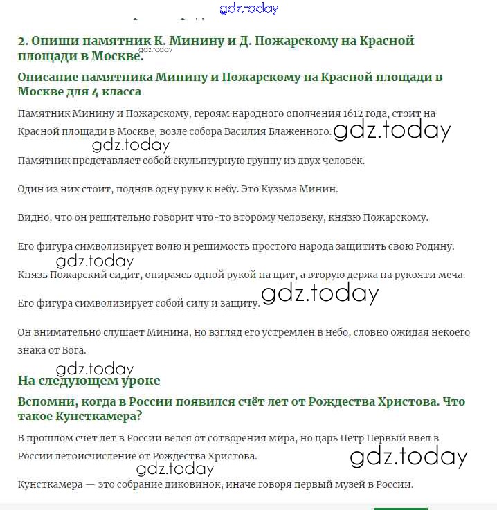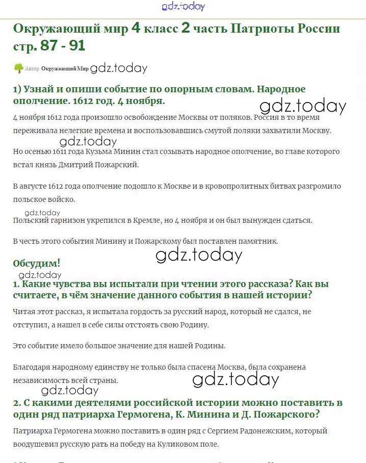 На страницах сайта gdz.today вы найдете учебный и вспомогательный материал, направленный на улучшения знаний школьной программы. ГДЗ - онлайн мир знаний Страницы истории России Решение к части 2 87 Учебнику по Окружающему миру для 4 класса Плешаков, Крючкова Просвещение Школа России 2013