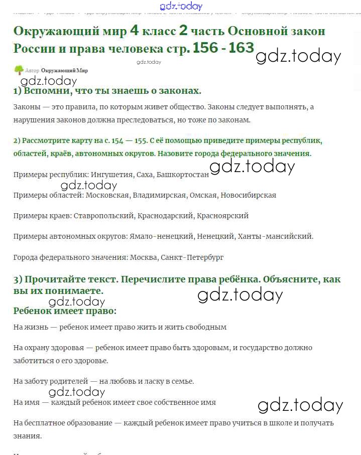 На страницах сайта gdz.today вы найдете учебный и вспомогательный материал, направленный на улучшения знаний школьной программы. ГДЗ - онлайн мир знаний Современная Россия Решение к части 2 156 Учебнику по Окружающему миру для 4 класса Плешаков, Крючкова Просвещение Школа России 2013