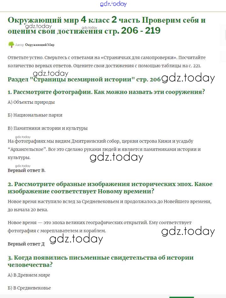 На страницах сайта gdz.today вы найдете учебный и вспомогательный материал, направленный на улучшения знаний школьной программы. ГДЗ - онлайн мир знаний Наши проекты Решение к части 2 206 Учебнику по Окружающему миру для 4 класса Плешаков, Крючкова Просвещение Школа России 2013