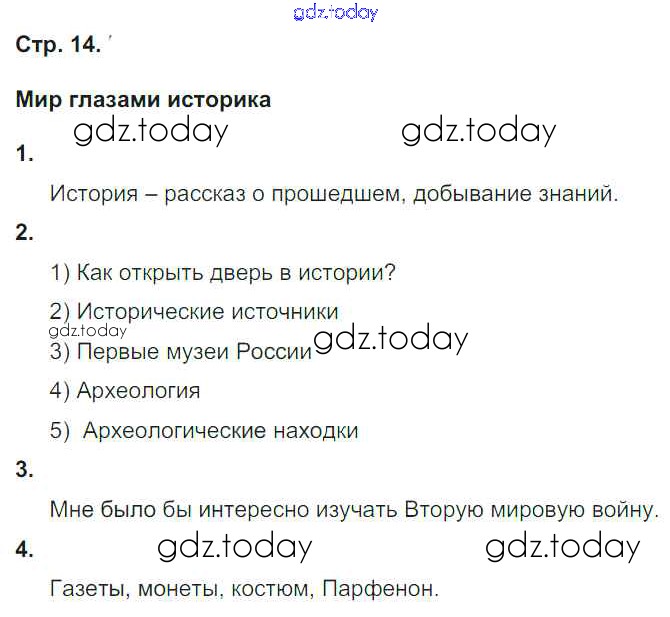 На страницах сайта gdz.today вы найдете учебный и вспомогательный материал, направленный на улучшения знаний школьной программы. ГДЗ - онлайн мир знаний Решение к части 1. Страницы 14 Рабочей тетради по Окружающему миру для 4 класса Соколова Экзамен УМК 2020