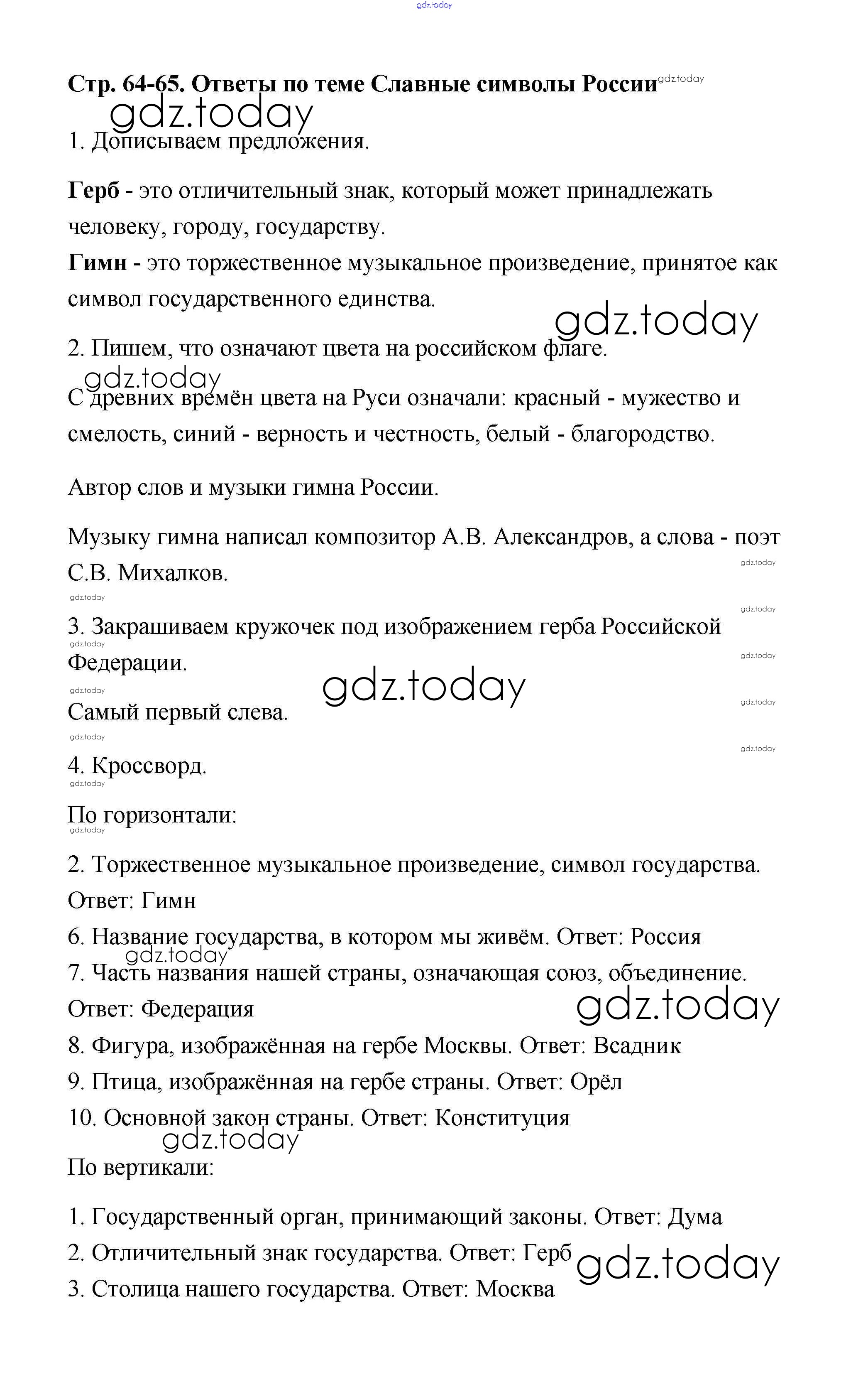 На страницах сайта gdz.today вы найдете учебный и вспомогательный материал, направленный на улучшения знаний школьной программы. ГДЗ - онлайн мир знаний Решение к части 2 64 Тетради для практических работ по Окружающему миру для 4 класса Тихомирова Экзамен 2017