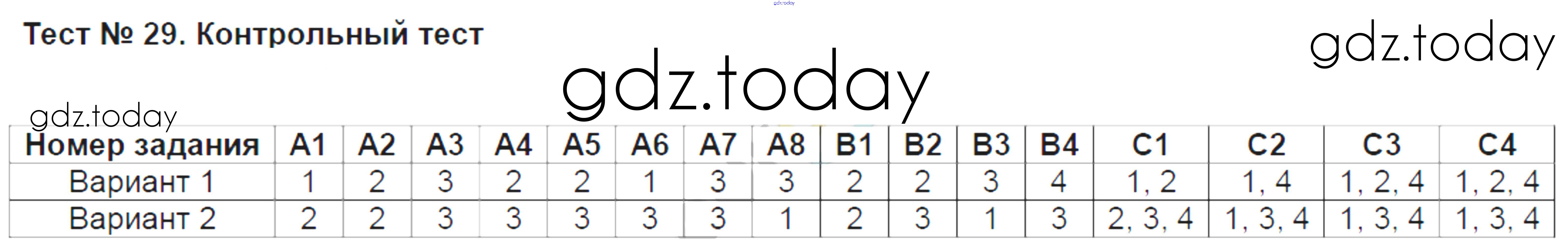 Ответы к Решение к тестам 29 Контрольно-измерительным материалам (КИМ) по Окружающему миру для 4 класса Тихомирова Экзамен 2014