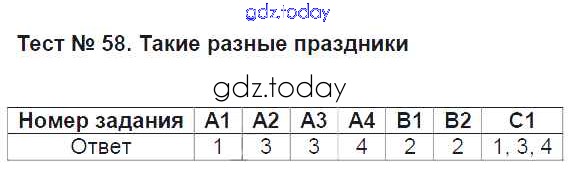 Ответы к Решение к тестам 58 Контрольно-измерительным материалам (КИМ) по Окружающему миру для 4 класса Тихомирова Экзамен 2014