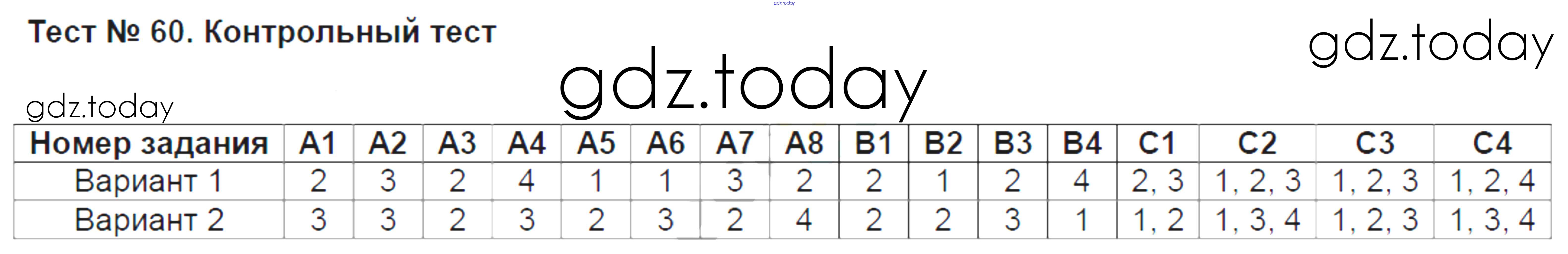 Ответы к Решение к тестам 60 Контрольно-измерительным материалам (КИМ) по Окружающему миру для 4 класса Тихомирова Экзамен 2014