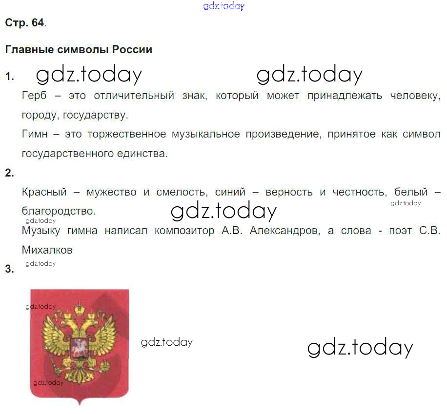 На страницах сайта gdz.today вы найдете учебный и вспомогательный материал, направленный на улучшения знаний школьной программы. ГДЗ - онлайн мир знаний Решение. Часть 2. Страницы 64 Практическим работам по Окружающему миру для 4 класса Тихомирова Экзамен УМК 2017