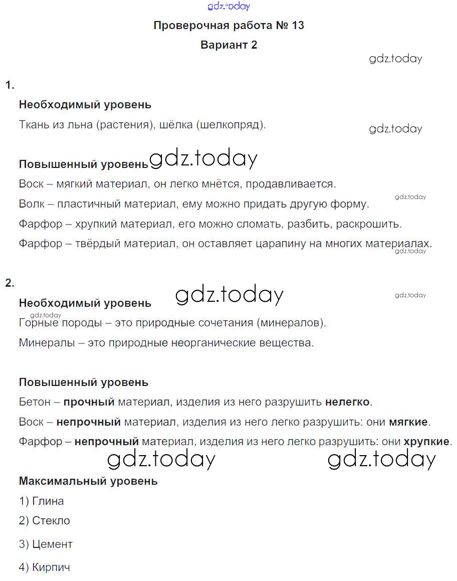 На страницах сайта gdz.today вы найдете учебный и вспомогательный материал, направленный на улучшения знаний школьной программы. ГДЗ - онлайн мир знаний ПР-13. Варианты Проверочные работы 2 Проверочным и контрольным работам по Окружающему миру для 4 класса Вахрушев, Бурский Баласс Школа 2100 2017