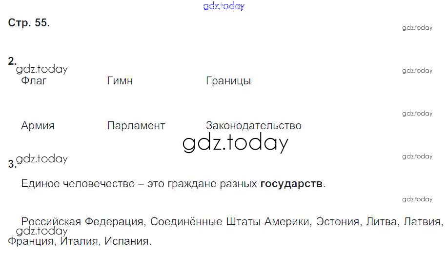 На страницах сайта gdz.today вы найдете учебный и вспомогательный материал, направленный на улучшения знаний школьной программы. ГДЗ - онлайн мир знаний Решение к части 1. Страницы 55 Рабочей тетради по Окружающему миру для 4 класса Вахрушев, Бурский Баласс Школа 2100 2016