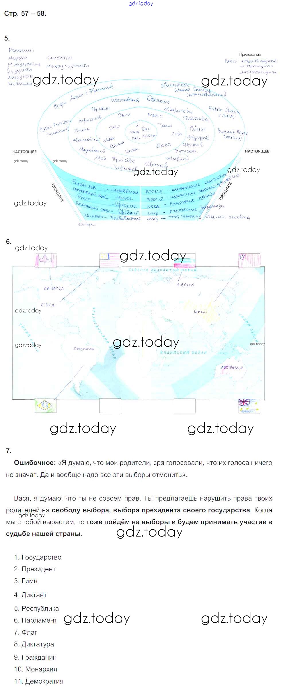 На страницах сайта gdz.today вы найдете учебный и вспомогательный материал, направленный на улучшения знаний школьной программы. ГДЗ - онлайн мир знаний Решение к части 1. Страницы 57 Рабочей тетради по Окружающему миру для 4 класса Вахрушев, Бурский Баласс Школа 2100 2016