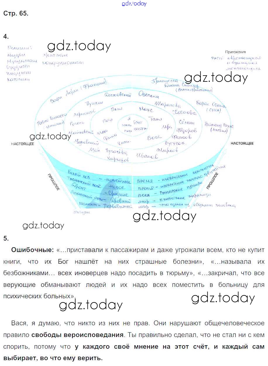На страницах сайта gdz.today вы найдете учебный и вспомогательный материал, направленный на улучшения знаний школьной программы. ГДЗ - онлайн мир знаний Решение к части 1. Страницы 65 Рабочей тетради по Окружающему миру для 4 класса Вахрушев, Бурский Баласс Школа 2100 2016