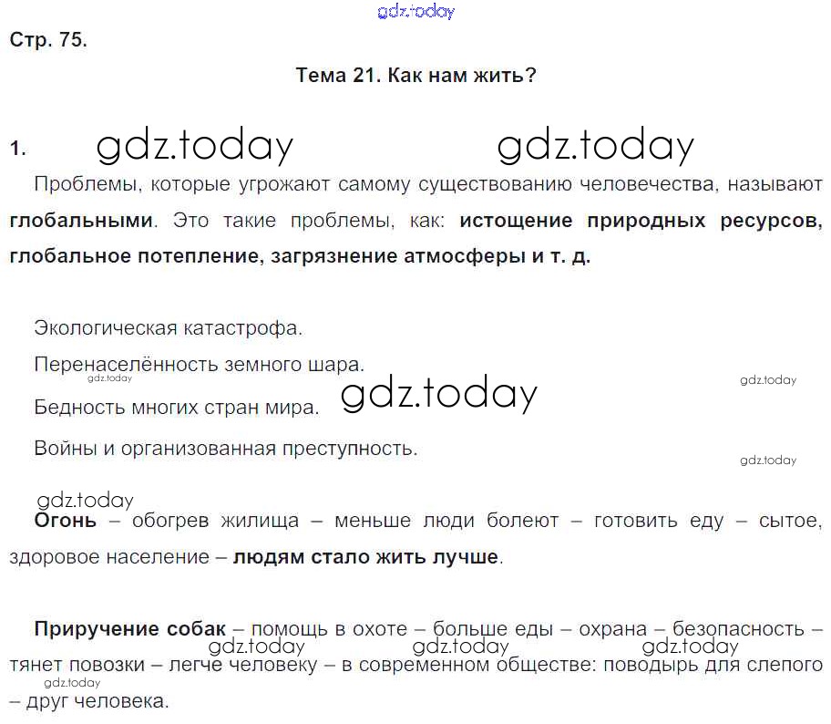 На страницах сайта gdz.today вы найдете учебный и вспомогательный материал, направленный на улучшения знаний школьной программы. ГДЗ - онлайн мир знаний Решение к части 1. Страницы 75 Рабочей тетради по Окружающему миру для 4 класса Вахрушев, Бурский Баласс Школа 2100 2016