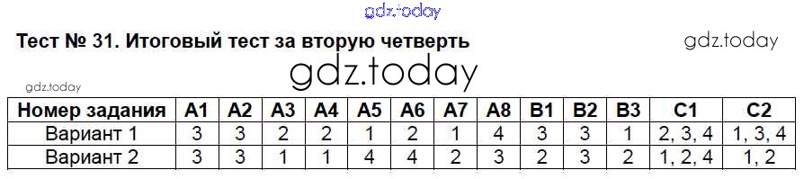 Ответы к Решение к тестам 31 Контрольно-измерительным материалам (КИМ) по Окружающему миру для 4 класса Яценко ВАКО 2017