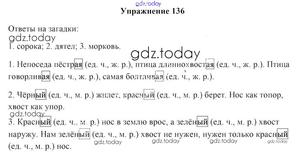На страницах сайта gdz.today вы найдете учебный и вспомогательный материал, направленный на улучшения знаний школьной программы. ГДЗ - онлайн мир знаний Часть 1. Решение к заданиям 136 Учебнику по Русскому языку для 4 класса Антипова, Верниковская Национальный институт образования 2018