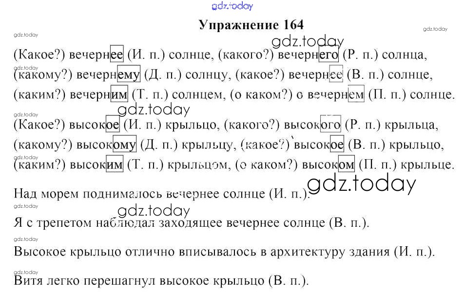 На страницах сайта gdz.today вы найдете учебный и вспомогательный материал, направленный на улучшения знаний школьной программы. ГДЗ - онлайн мир знаний Часть 1. Решение к заданиям 164 Учебнику по Русскому языку для 4 класса Антипова, Верниковская Национальный институт образования 2018